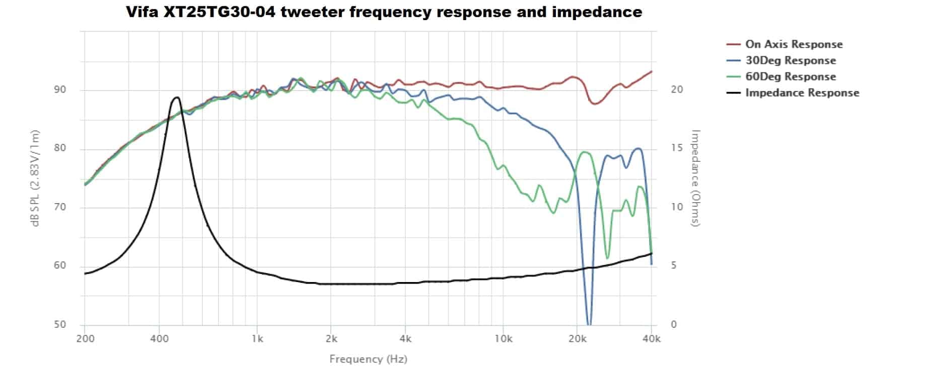 When we actually measure them, we can see that the tweeter is actually louder by a couple of decibels. This can happen for several reasons. First of all, you have to take the parameters quoted by the manufacturer with a grain of salt. It even says +/- 1 dB on the tweeter spec sheet. Secondly, you have to take into account the acoustic centers of the speakers, which is considered to be in the place of the voice coil. While both speakers are mounted flush on the baffle, the acoustic center of the mid-bass is around the magnet area, which is behind the tweeter. Therefore, the tweeter is actually in front (acoustically), compared to the mid-bass. Since it’s in front, it will be a tad louder.