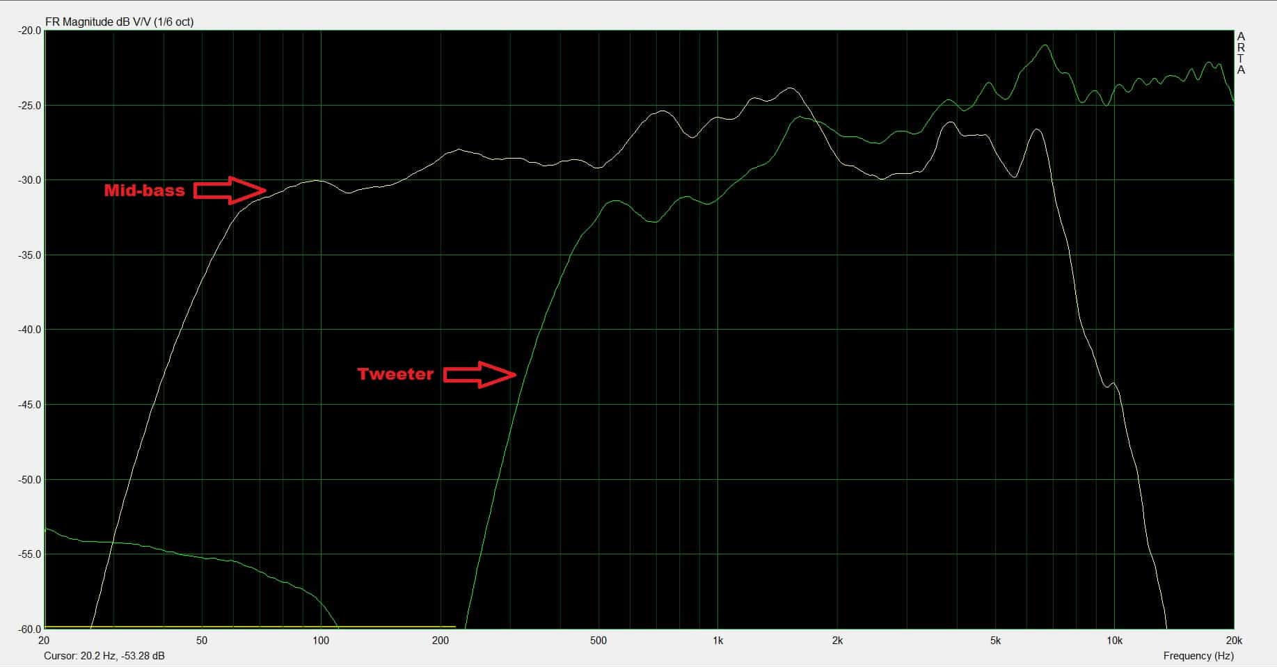 You can see a dip in the response between 2 kHz and 4 kHz, for both the mid-bass and the tweeter. This is actually some baffle step issue. You can fix it in the crossover design. Also, you can off-set the tweeter. Placing it closer to the side of the baffle (not in the center), will mitigate this problem. However, we are not aware of this issue as this article assumes we have no measuring tools. As I said in the beginning, compromises will be made, and we shall continue.